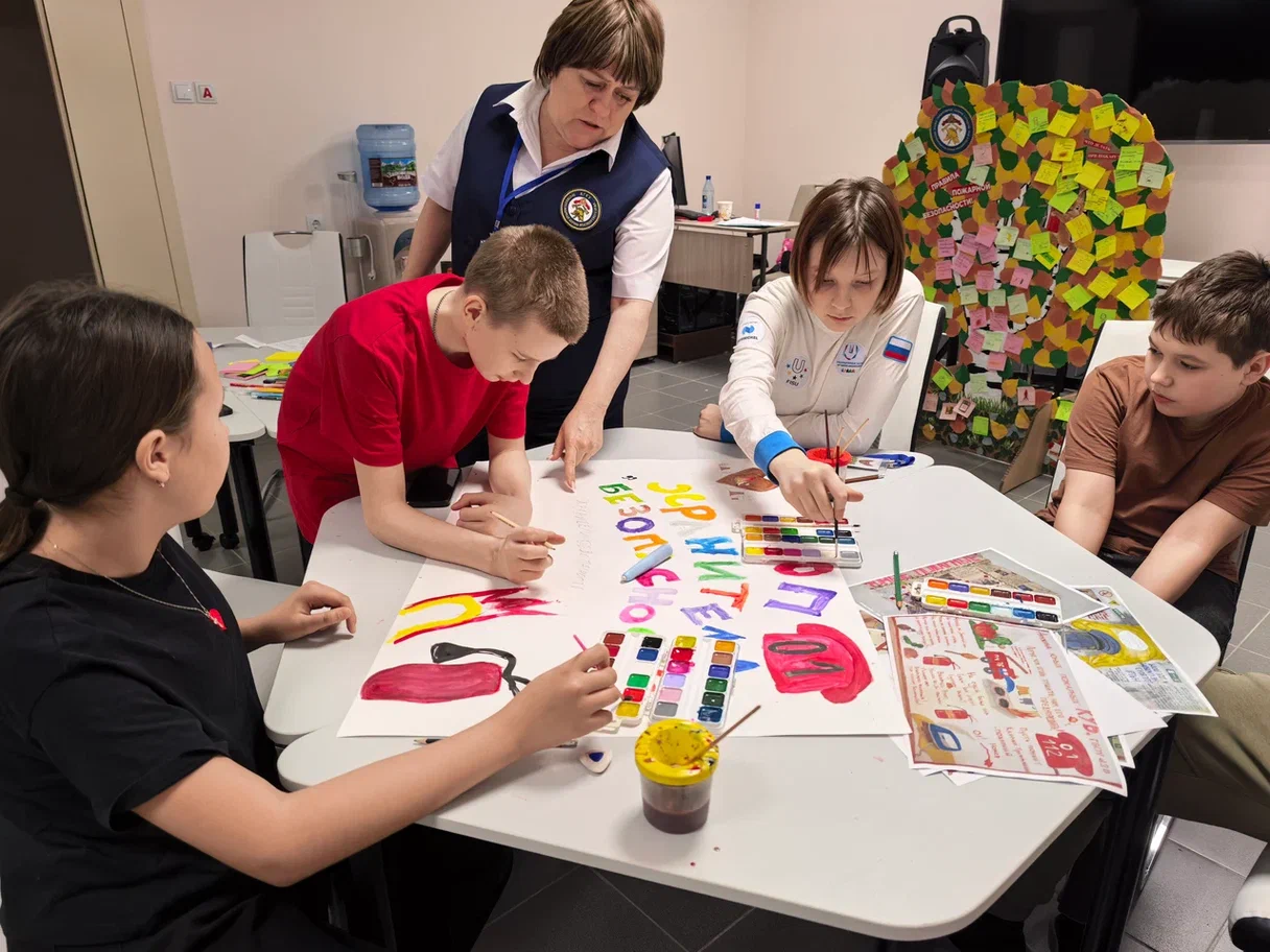 Творческая мастерская позволила ребятам проявить себя с другой стороны: они разрабатывали наглядные материалы по пожарной безопасности, создавая памятки и интерактивные плакаты для профилактики.
