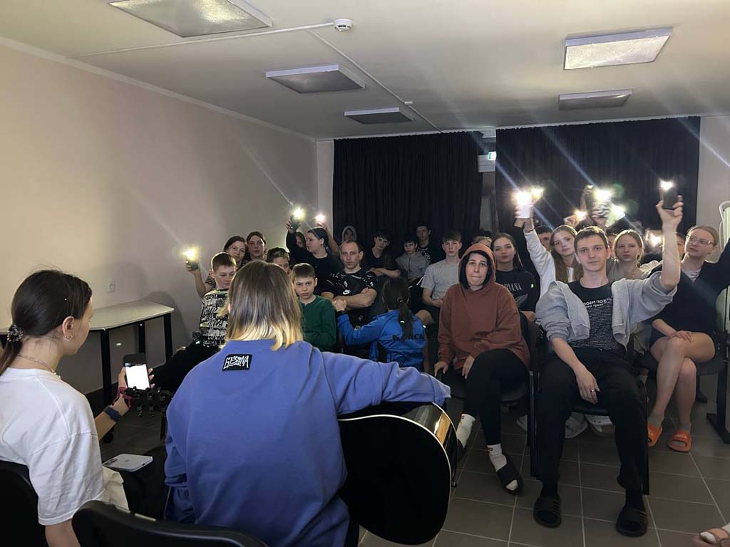 На заключительной вечерней программе для ребят был устроен вечер песен. Они с удовольствием вспомнили тёплые летние вечера, песни под гитару у костра.