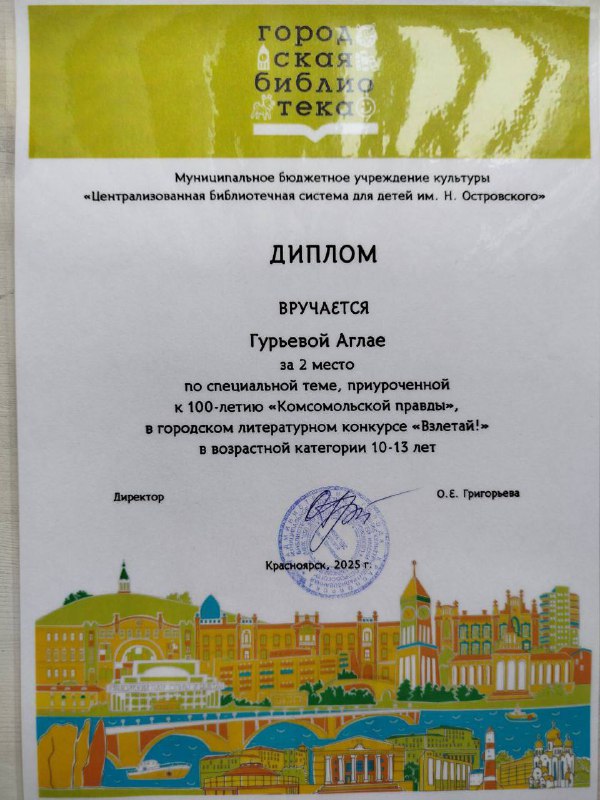 Участница краевой летней профильной смены 2025 года «Герои нашего времени» Аглая Гурьева учится в средней школе № 145 г. Красноярска. По возвращении со смены, прошедшей на детско-юношеской туристской базе «Багульник», она написала рассказ с одноименным названием. Литературная работа Аглаи, которой удалось очень точно уловить смысл смены «Герои нашего времени», заняла 2 место в городском литературном конкурсе «Взлетай!».
